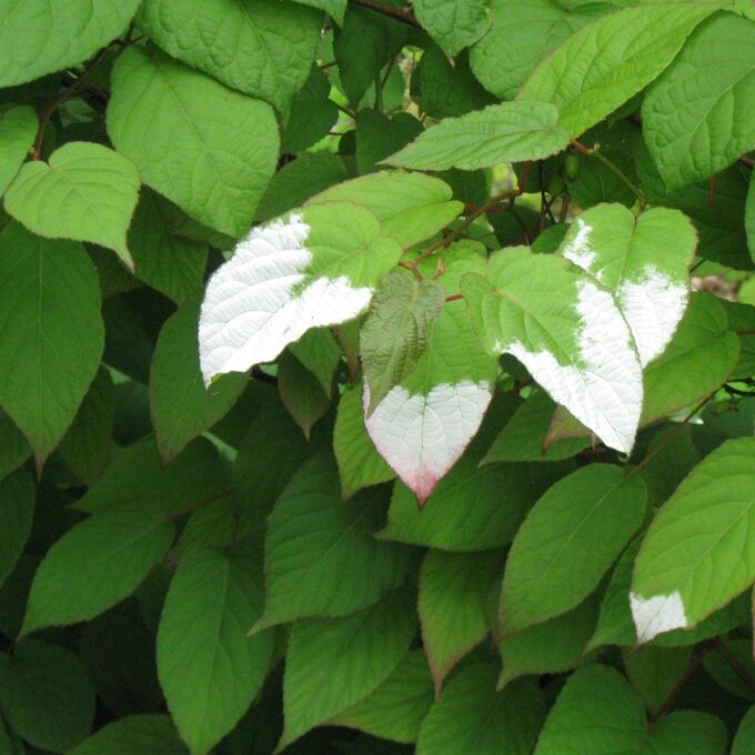 Растение имеет белые цветки, которые расцветают в начале лета, придавая вашему саду неповторимый шарм и аромат. Актинидия полигама брюнет (мужской) предпочитает тень и дренированные богатые почвы, поэтому выберите для него укромное место с защитой от прямых солнечных лучей.