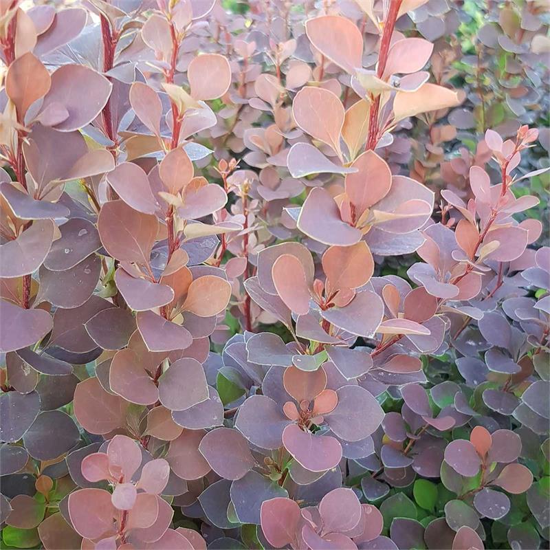 Саженцы Барбариса Тунберга Саммер Чоколат (Berberis thunbergii) – декоративный компактный кустарник, его высота достигает до 150 сантиметров. Крона колонновидного типа, диаметром до 60 сантиметров. Этот вид барбариса идеально подходит для живой изгороди. Цветет в мае желтыми цветками. Листья заостренно-овальной формы фиолетового тона, при условии, что куст растет на солнце. В тени его листья меняют окрас на зеленый. Плоды не съедобны. Сорт Тунберга Саммер Чоколат неприхотлив, неплохо себя чувствует в городских условиях. Не боится засухи, ветров. Хорошо зимует, выдерживает без укрытия до минус 35 градусов. Не переносит застоя влаги в почве.