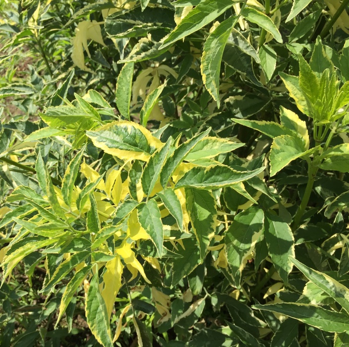 Саженцы Бузины (бузок) черной Мадонна (Madonna) принадлежат к пестролистным сортам: крупная листовая пластина зеленого цвета имеет широкую желто-кремовую окантовку. Многолетник быстро растет образуя многоствольный кустарник, высотой 2,5 метра, с густой раскидистой кроной. Весеннее цветение белыми зонтичными соцветиями добавляют растению декоративности. Осенью куст украшен многочисленными гроздьями черных блестящих несъедобных ягод. Бузина отличается неприхотливостью к почве и уходу, она почти не поражается болезнями и вредителями. Для сохранения пестрой окраски листочков высаживайте растение на свету.