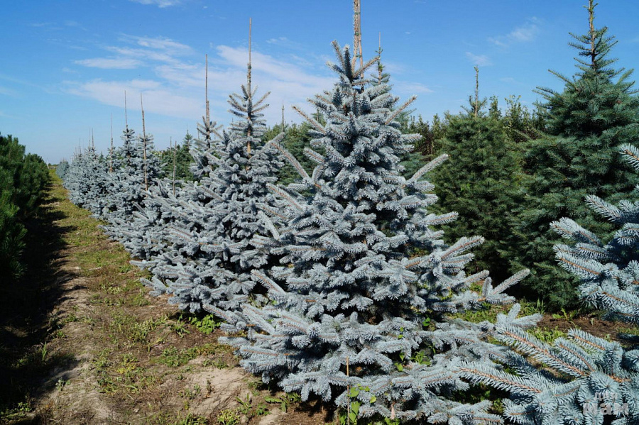 Саженцы ели голубой Хупси (Hoopsii) выделяются глубокой голубизной хвои и обладают массой поклонников среди садоводов благодаря своей декоративности. Особенно эффектно смотрятся крупные сиреневые шишки на фоне дымчатого облака широких ветвей. Взрослый крупномер достигает 15 м. Хвоя короткая, жесткая и сохраняет синеватый оттенок круглый год. Ель голубая Хупси идеально подходит для высадки на участке, как новогоднее дерево. Достоинства: