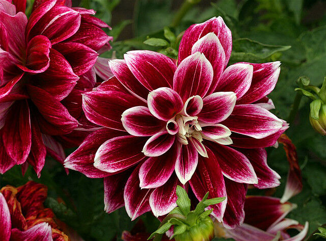 Георгина декоративная "Селлвуд Глори" - это великолепное растение с темно-бордовыми цветками и белыми кончиками, которое поразит вас своей красотой. Ее стебель прочный и устойчивый, а размеры растения позволяют ему вырасти великолепным и внушительным. Листья георгины имеют интересную форму, что делает ее еще более привлекательной для глаз.