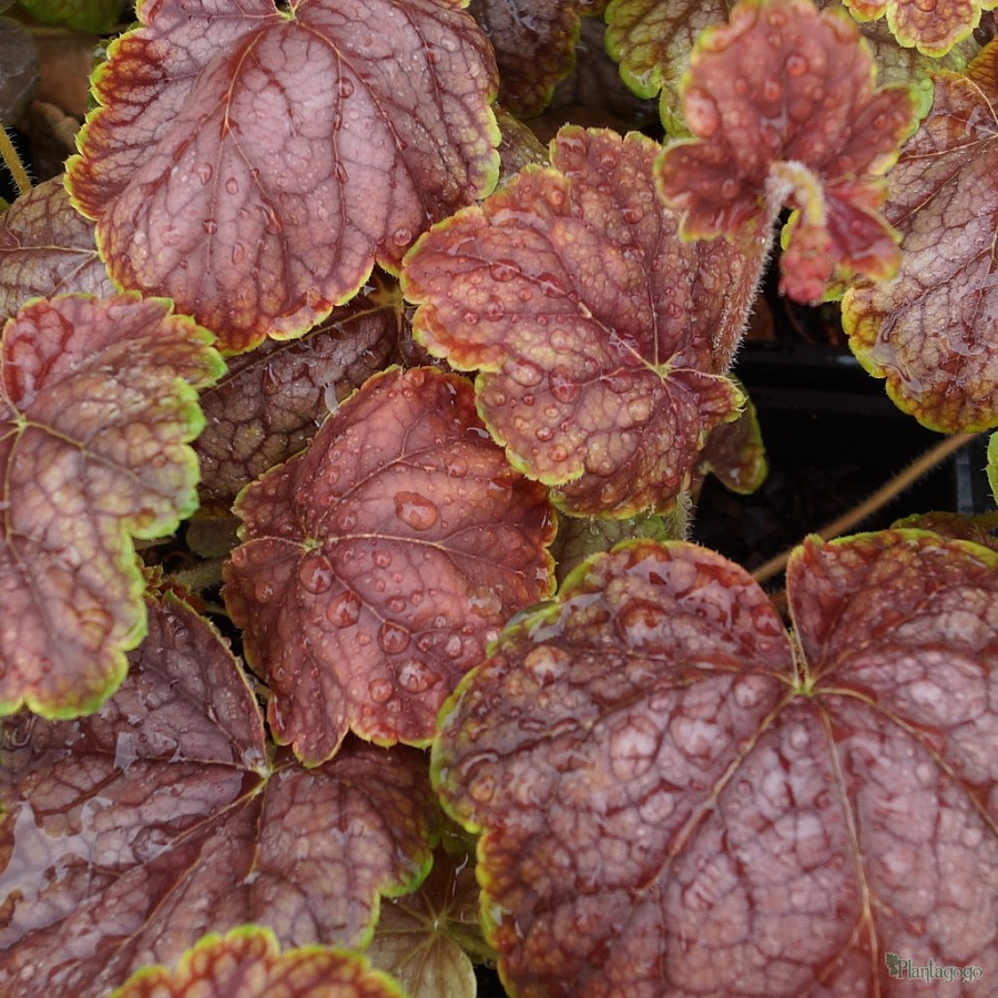 Рассада гейхеры Мастер Пеинтер Пикассо (Master Painter Picasso) порадует невероятно красивой окраской. По краям янтарно-бордовых листьев имеется золотистая каемка, а на поверхности проступают темные прожилки. Во второй половине лета среди листвы появляются высокие цветоносы с кремовыми соцветиями. Уход за рассадой гейхеры Мастер Пеинтер Пикассо (Master Painter Picasso) не требует больших затрат времени. Растение нужно поливать не чаще одного раза в два дня. Чтобы предотвратить появление сорняков, поверхность места посадки посыпают мульчой. На зиму надземную часть листвы не срезают, она служит укрытием корню.