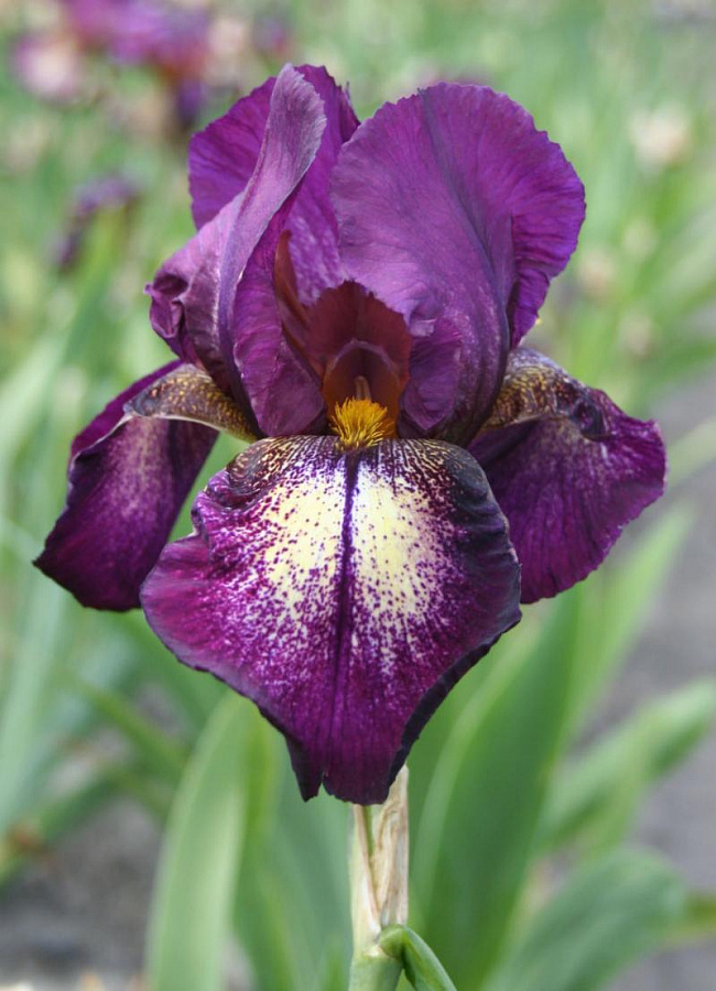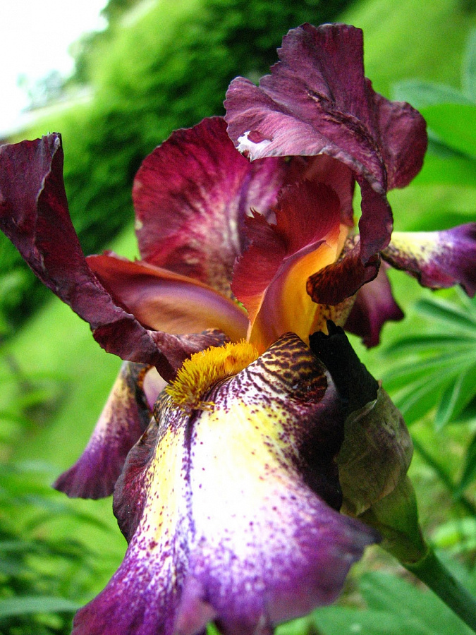 Окраска цветка : теёмно-бордовый с жёлтым пятном на бородке