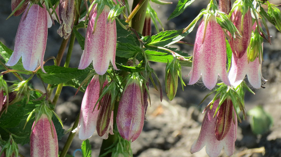 Рассада колокольчика такесима теневынослива и влаголюбива, образует густые куртинки. Наибольшая декоративность проявляется на фоне кустарников и хост. Цветки удивительно красивы: изящные, бокаловидные, поникающие – длиной до 7 см. Окрашены в фарфорово-розовый или розово-малиновый цвет. Собраны они в многочисленные соцветия-кисти. Цветет многолетник очень обильно и продолжительно: с июня до заморозков. Высаживают рассаду колокольчика такесима на хорошо освещенные или слегка затененные участки. Сорт легок в уходе.