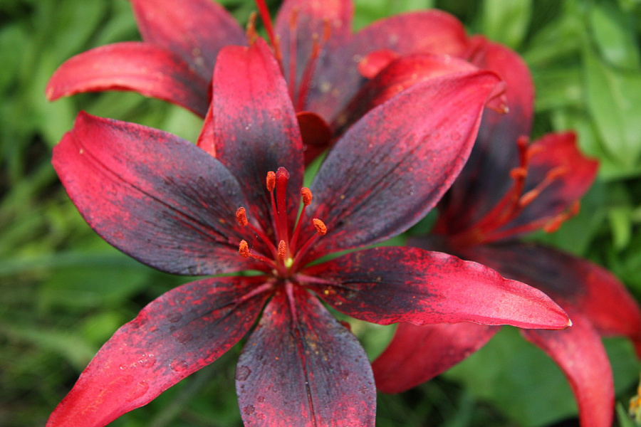• Окраска цветка : алый с черным напылением в центре
