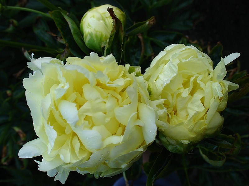 Рассада пиона молочноцветкового Голд Майн (Gold Mine): удивительное растение, у которого даже корни желтоватого оттенка, а крупные бледно-желтые цветы очень эффектны. Взрослое растение достигает 1м в высоту. Цветение обильное, начинается в конце весны или в начале лета. Цветки нежного молочно-желтого оттенка очень пышные и крупные. Долго держаться в срезке. Листья темно-зеленые, узкие. Сорт может размножаться семенами. После пересадки сортовые качества проявляются на 2-й год. Особенности пиона Голд Майн: