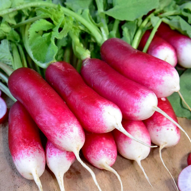 Семена редиса «Французский завтрак» высевают в конце апреля. Сорт устойчив к легким заморозкам и влаголюбив. Участок для рассады редиса «Французский завтрак» выбирают хорошо освещенный с легкой плодородной почвой. Урожай можно собирать на 25 день после появления первых всходов. Корнеплоды вытянутые, округло-цилиндрической формы с гладкой кожицей. Масса до 25 г. Мякоть белого цвета и сочная. Вкус без горечи, слабоострый. К достоинствам сорта семян редиса «Французский завтрак» относят его высокие вкусовые и товарные качества, устойчивость к цветушности.