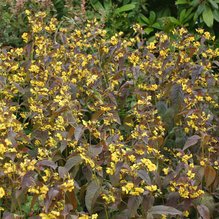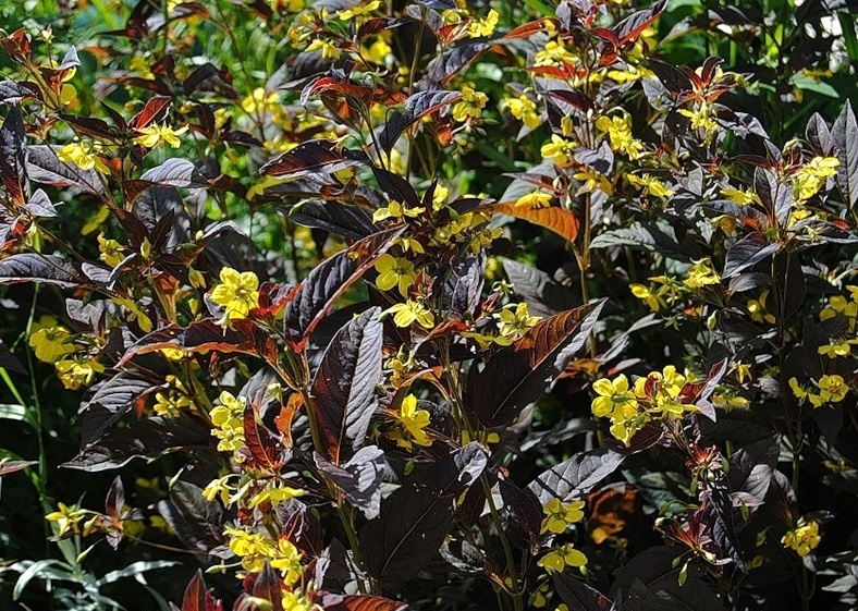 Рассада вербейника реснитчатого Файркрекер (Firecracker) прекрасна, благодаря винно-красному оттенку широких ланцетных листьев, которые и являются основной декоративной частью растения. В конце августа в пазухах расположенных на верхушке листьев появляются рыхлые соцветия с нежными лимонно-желтыми цветочками.
