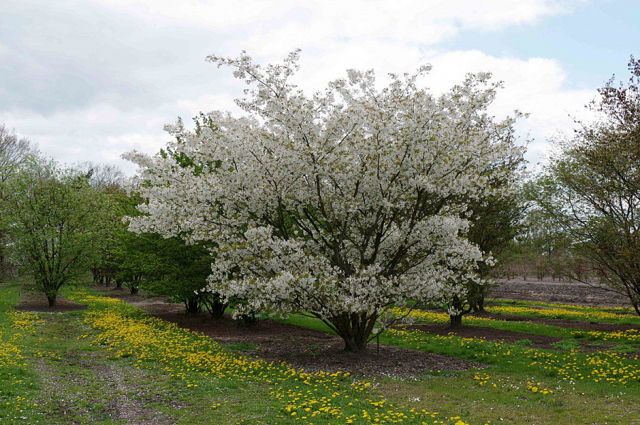 Такое крупное дерево нуждается в достаточном пространстве для роста, поэтому вишню размещают в качестве солитера на открытой солнечной площадке.